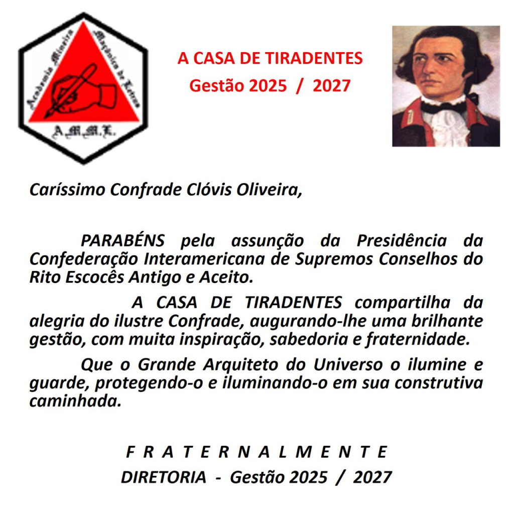 Felicitação da AMML Pela Assunção da Presidência da Confederação Interamericana