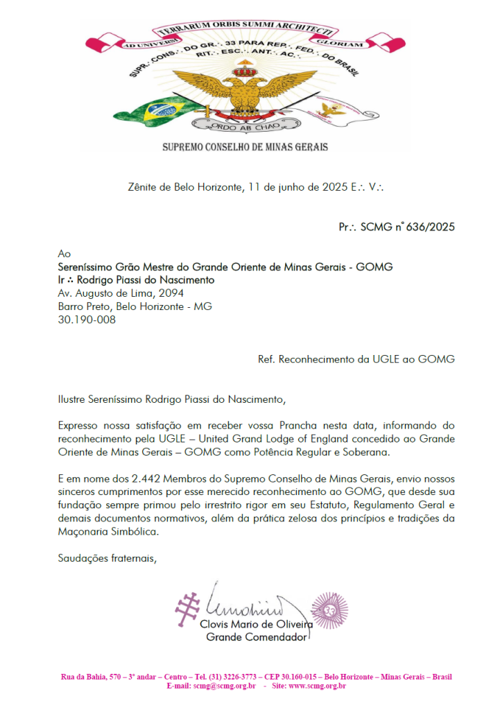 Pelo Sereníssimo Grão-Mestre Adjunto Vanderlei Geraldo de Assis